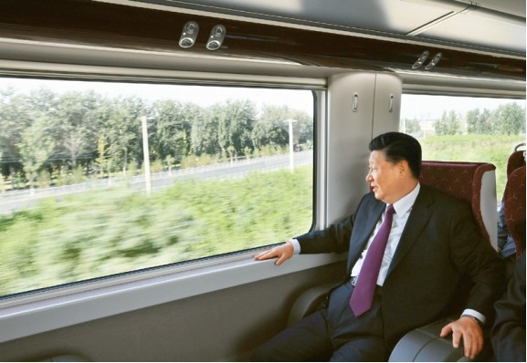2019年9月25日上午,北京(jing)大興國(guo)際機場投運儀式在北京(jing)舉行(xing)。中(zhong)共中(zhong)央總書記、國(guo)家主(zhu)席(xi)、中(zhong)央軍委主(zhu)席(xi)習近(jin)平出(chu)席(xi)儀式,宣布機場(chang)正式投運并巡覽(lan)航(hang)站樓(lou)。這是習(xi)近平乘坐(zuo)軌道列車前往北(bei)京大(da)興國際機場(chang)。新華(hua)社記者 謝環(huan)馳/攝(she)