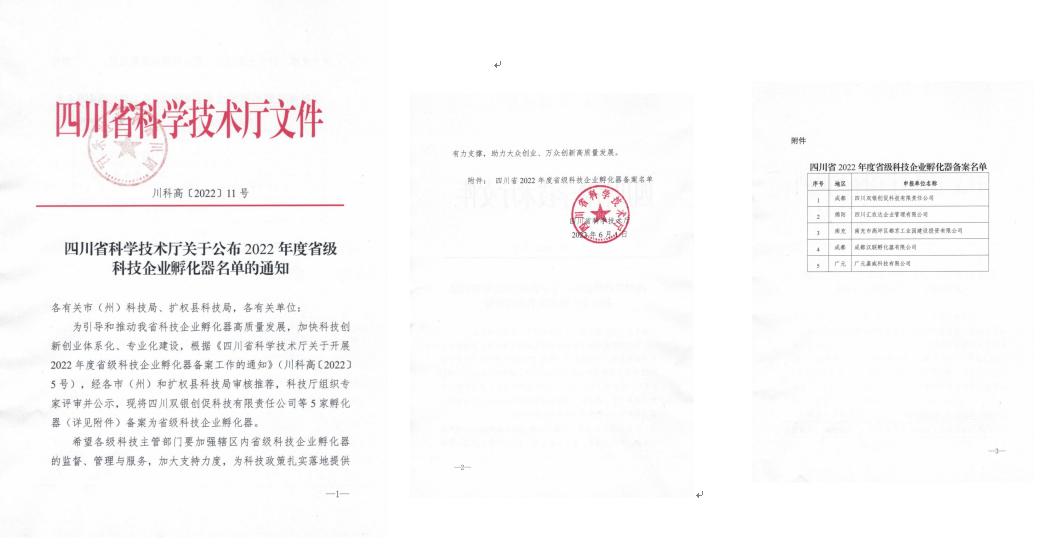 近日,四川省科學技術廳發布了《四川省科學技術廳關于公布2022年度省級科技企業孵化器名單的通知》,集團旗下四川匯農達企業管理有限公司運營的同心協同創新園喜獲認定!至此,科源集團旗下公司運營的國家和省級科技企業孵化平臺已增至6家。