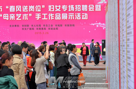 為更好地服務城鎮婦女就業創業和用人單位用工需要,昨(26)日,2015“春風送崗位”婦女專場招聘會在人民公園拉開帷幕,190余家企事業單位提供了15158個崗位。招聘會共吸引5000余人到場求職,676人現場達成意向用工登記。現場還舉行了“母親藝術”手工作品展示等活動。