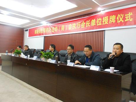 市委農辦副主任何春華、市農業局副局長王均沛為綿陽綠色有機行業協會(商會)執行會長單位——科技城科源科技有限公司授牌。市工商聯秘書長王華明、綿陽綠色有機行業協會(商會)發起人、名譽會長蔣開恩、綿陽綠色有機行業協會(商會)會長、四川鐵騎力士集團董事長雷文勇,科源科技董事長、綿陽綠色有機行業協會(商會)執行會長廖藝徽,綿陽綠色有機行業協會(商會)會員企業代表參加了會議。