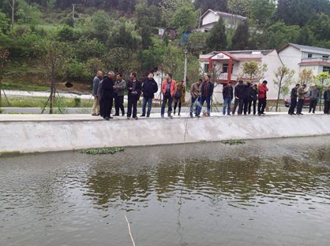 圖為考察(cha)團在麻(ma)秧(yang)鄉(xiang)華(hua)騰水產養殖專業合(he)作(zuo)社咨詢(xun)水產品種引(yin)進事宜。