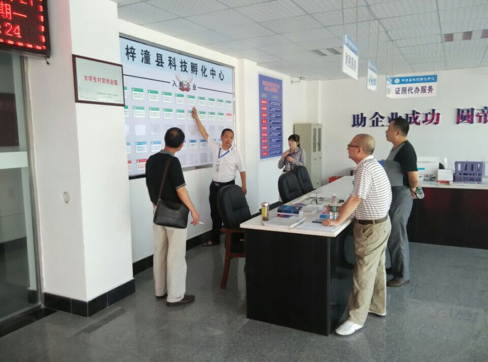 2015年7月27日上午(wu),綿陽(yang)市梓潼(tong)縣發改(gai)商務(wu)局和工業商務(wu)局李建(jian)忠副局長、何江林副局長等有(you)關(guan)領導(dao)到對進行調研(yan)。綿陽(yang)市楊旭(xu)靜經理全程(cheng)接待陪同,并對孵(fu)化中心入孵(fu)的企(qi)業進行了(le)詳細的介紹。