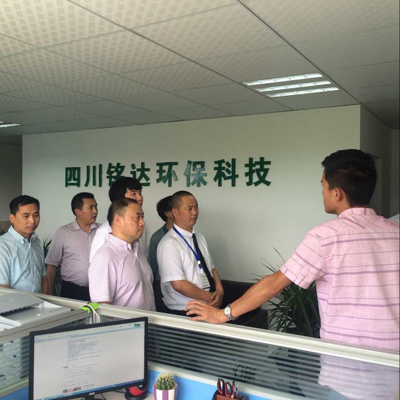 楊廳長聽取四川銘達環保科技有限(xian)公(gong)司經理作企業運行發展報告