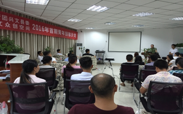 2016年6月24日上(shang)午,共(gong)青(qing)團興(xing)(xing)文(wen)(wen)縣委攜手眾創空間(jian)(jian)在創夢咖(ka)啡廳舉行(xing)了(le)2016年首(shou)期(qi)青(qing)年創客沙龍。參加(jia)此次活動的有共(gong)青(qing)團興(xing)(xing)文(wen)(wen)縣委袁書(shu)記(ji)、興(xing)(xing)文(wen)(wen)縣苗族工業園區招商局彭(peng)局長、15個(ge)鄉(xiang)鎮團干(gan)部(bu)及(ji)鄉(xiang)鎮創業有志(zhi)青(qing)年代表、眾創空間(jian)(jian)入孵企業等共(gong)四十余人。