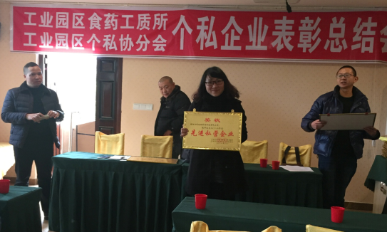 2017年1月17日,江油(you)市胡(hu)小芳經(jing)理受邀參加工(gong)業(ye)園區食藥工(gong)質所、工(gong)業(ye)園區個(ge)私協分(fen)會聯合舉(ju)辦的2016年度個(ge)私企業(ye)表彰(zhang)總結會。