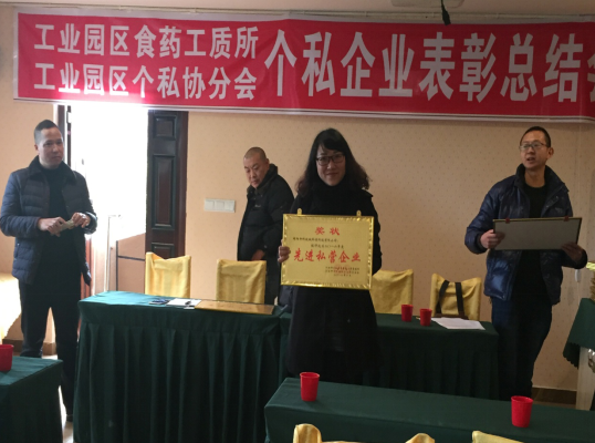2017年(nian)1月17日,江油市胡小芳經理受邀參加工業園區(qu)(qu)食藥工質所、工業園區(qu)(qu)個私協分會聯(lian)合舉辦的2016年(nian)度個私企(qi)業表彰總結會。