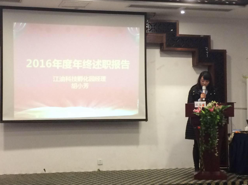 大會由(you)公司董事長(chang)助(zhu)理(li)薛興泉(quan)主(zhu)持(chi),首先由(you)江(jiang)油、梓潼、鹽亭(ting)、興文、同(tong)心孵化(hua)器經(jing)理(li)、財務主(zhu)管、兩會總(zong)經(jing)理(li)助(zhu)理(li)、行政部主(zhu)任、董事長(chang)助(zhu)理(li)等作(zuo)年(nian)終述(shu)職報告,隨(sui)后(hou)由(you)董事長(chang)廖藝徽作(zuo)重要講話和總(zong)結(jie),最后(hou)對2016年(nian)度(du)(du)涌現出的年(nian)度(du)(du)先進集體、優秀(xiu)管理(li)者、優秀(xiu)員工等進行表(biao)彰。