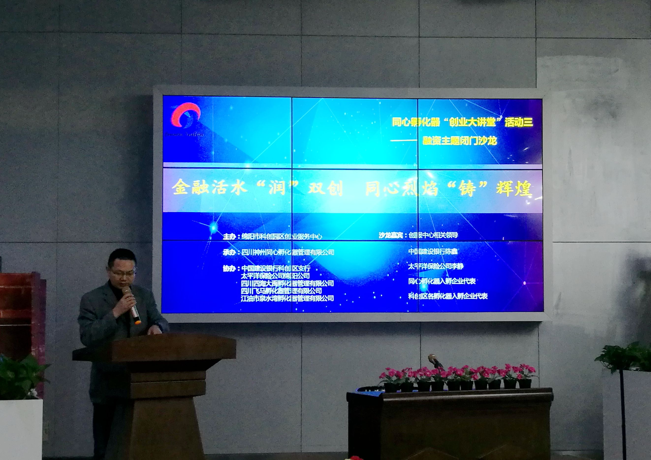 本次活(huo)(huo)(huo)動是同心孵(fu)化器(qi)“創(chuang)(chuang)業大講(jiang)堂(tang)”系列活(huo)(huo)(huo)動之一(yi)(yi),一(yi)(yi)經推出,即得到了(le)(le)公(gong)司駐江(jiang)油、鹽亭、梓潼等(deng)地(di)孵(fu)化器(qi)的(de)大力支持及各地(di)在孵(fu)企(qi)業的(de)積極響應,主(zhu)動報名參與(yu)活(huo)(huo)(huo)動的(de)企(qi)業代(dai)表達100余(yu)人。經與(yu)主(zhu)辦方科(ke)創(chuang)(chuang)區(qu)創(chuang)(chuang)服中心溝通(tong)協調后,最終篩(shai)選了(le)(le)近(jin)60家企(qi)業代(dai)表當天(tian)來(lai)到了(le)(le)活(huo)(huo)(huo)動現場。活(huo)(huo)(huo)動當天(tian),建行(xing)科(ke)創(chuang)(chuang)區(qu)支行(xing)金行(xing)長及相關(guan)產(chan)品(pin)經理,分(fen)別(bie)就銀行(xing)針對(dui)初創(chuang)(chuang)、小微、科(ke)技型企(qi)業專門推出的(de)一(yi)(yi)系列有(you)(you)針對(dui)性、有(you)(you)特色、有(you)(you)市場的(de)金融服務產(chan)品(pin)進行(xing)了(le)(le)宣廣介紹和(he)交流;隨后太平洋保險公(gong)司綿陽公(gong)司李經理與(yu)現場的(de)企(qi)業代(dai)表們就如何降(jiang)低(di)創(chuang)(chuang)業風險,怎(zen)樣增(zeng)強風控(kong)意識等(deng)做(zuo)了(le)(le)深入(ru)探(tan)討和(he)細(xi)致分(fen)享。
