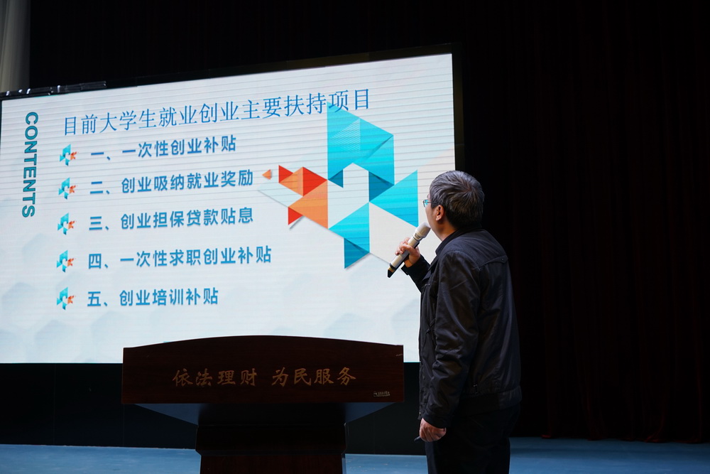 縣人社局、縣科工商務局、縣總工會、團縣委、縣經開區等相關部門做創新創業扶持政策宣講。