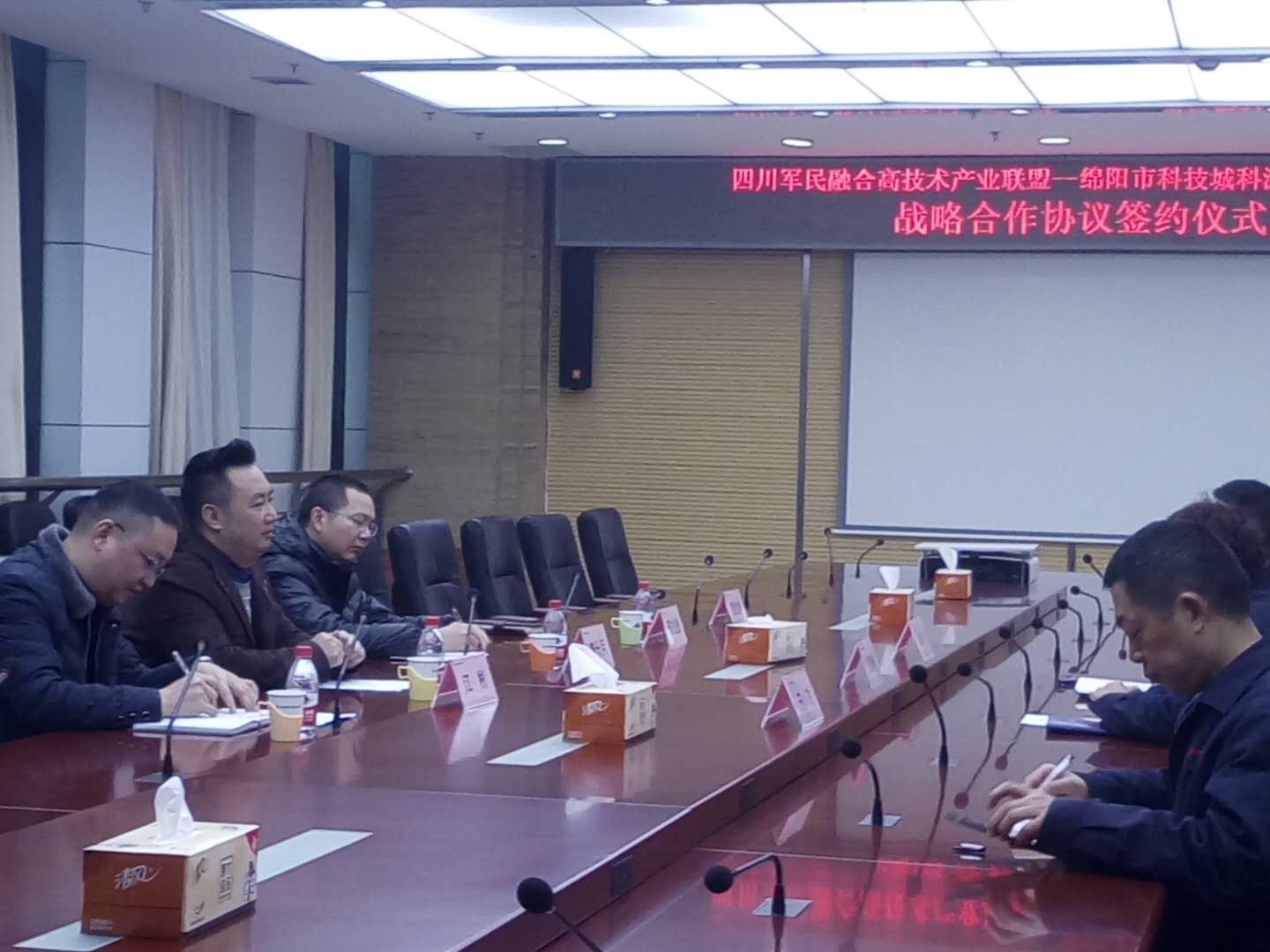 為深入貫徹落實國家軍民融合發展戰略,整合資源、優勢互補、實現合作共贏,11月27日上午,綿陽市科技城有限公司與四川軍民融合高技術產業聯盟簽訂戰略合作協議,正式開啟軍民融合協同創新模式。