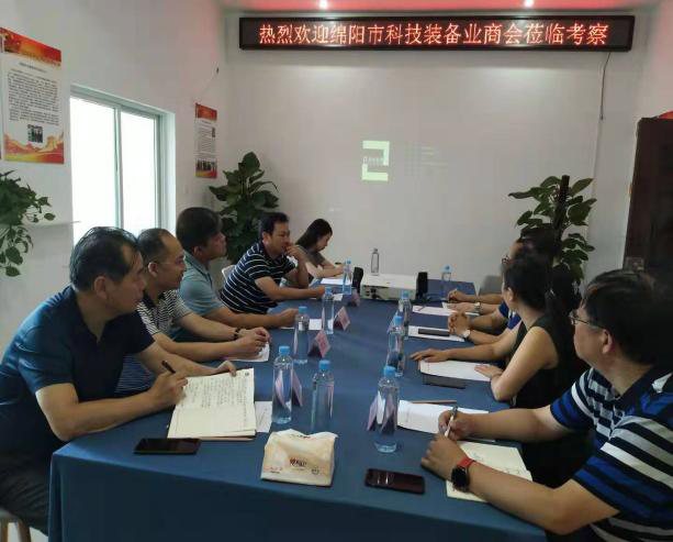 2019年8月6日,綿陽市科技裝備業商會會長于少波一行7人到同心孵化器考察交流。集團董事長廖藝徽、總監金絲楠和同心孵化器總經理邢良勇陪同。